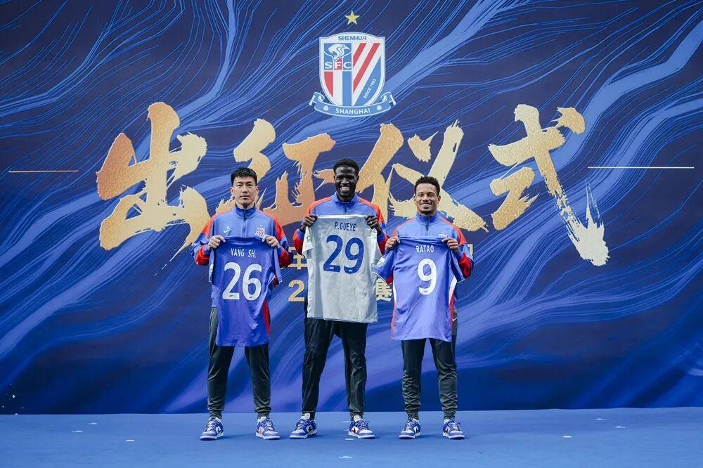 仪式上,申花新赛季引入的三名新援盖伊、拉唐和杨帅身披新球衣与全队一同登台。其中,高中锋盖伊来自英冠布莱克本队,新赛季将身披申花29号球衣。拉唐是上赛季J联赛银靴。成都蓉城原后卫杨帅将提升申花后防线的整体实力。